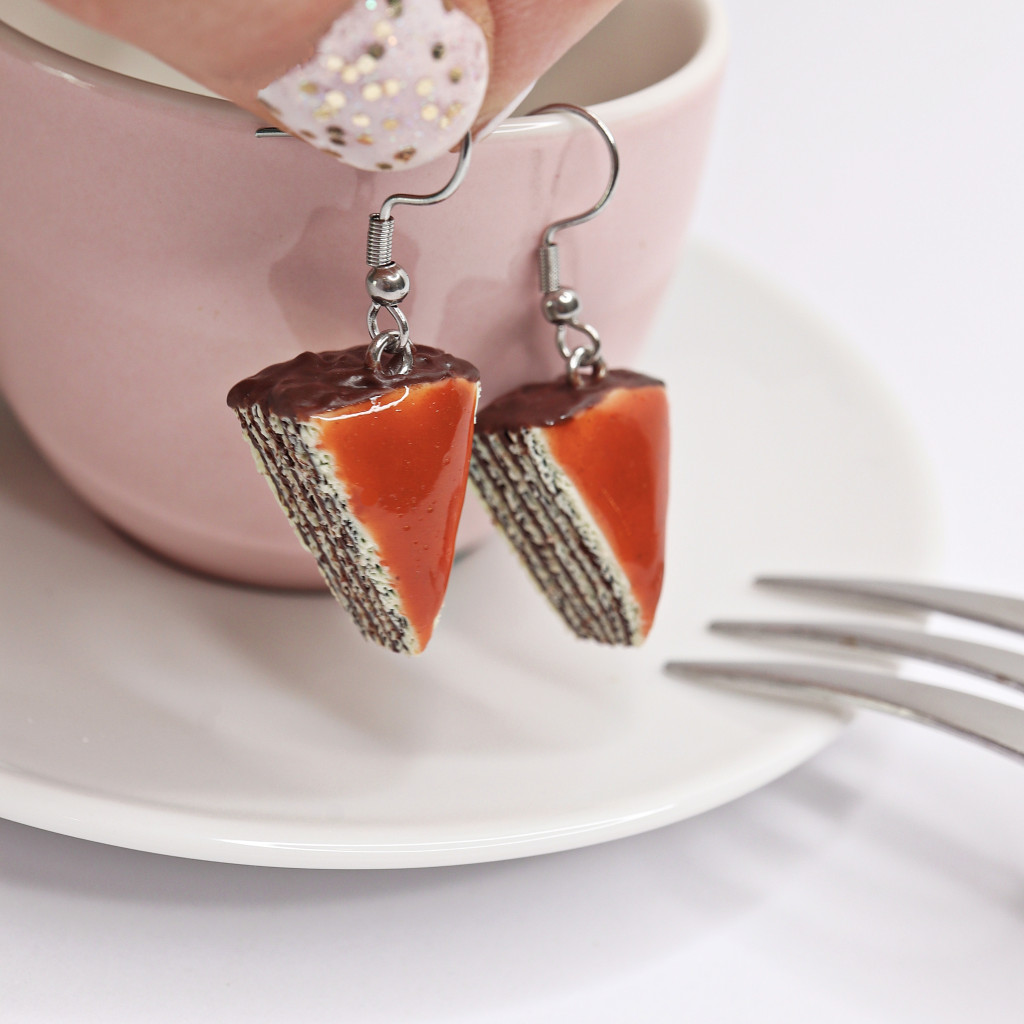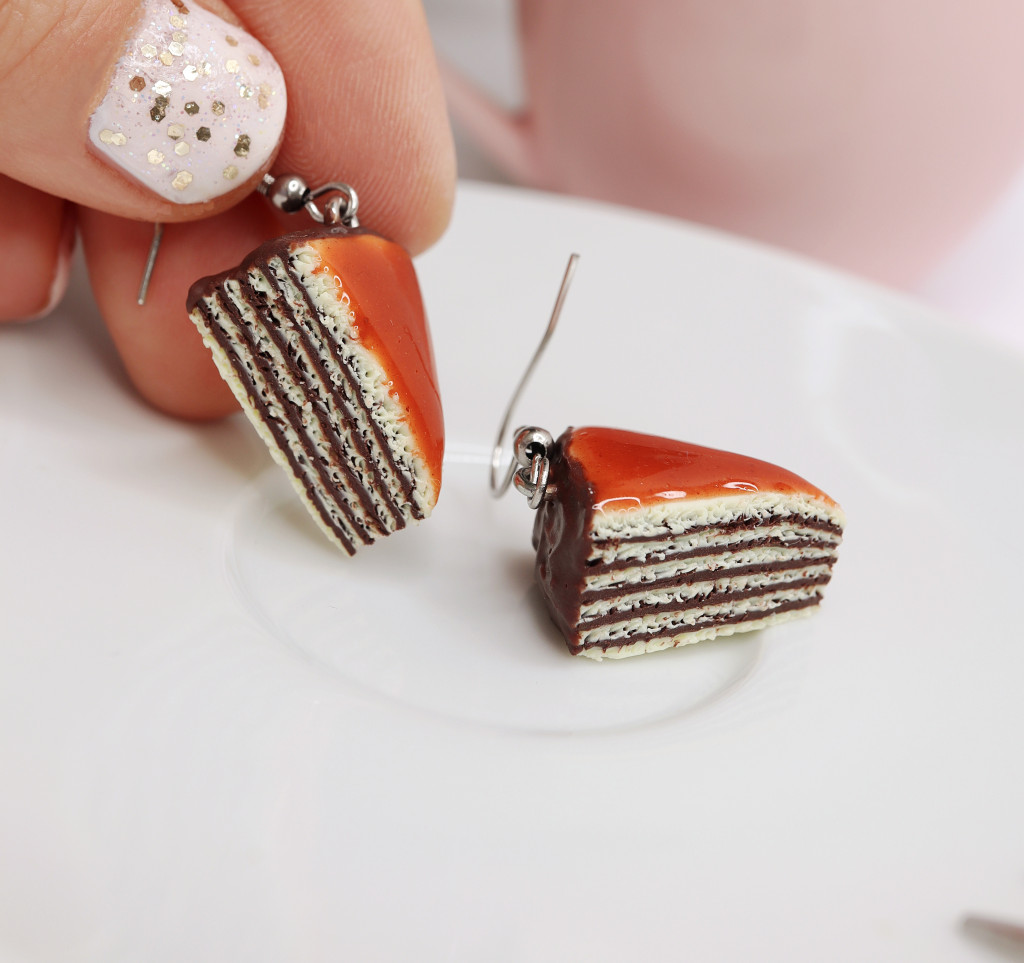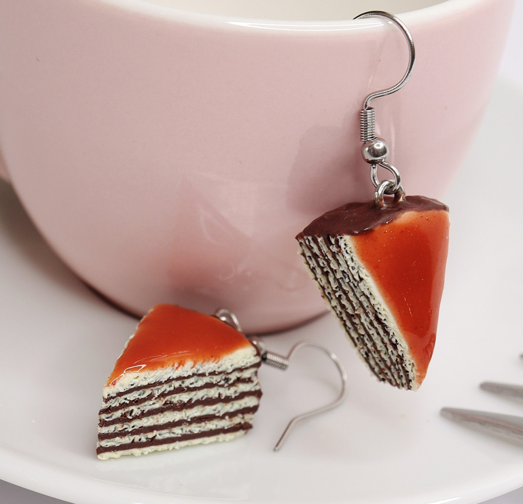 Ez a Dobostorta fülbevaló tökéletes ajándék lehet valakinek, akinek ez a kedvenc desszertje, vagy szereti a különleges, vicces kiegészítőket. :) Tedd boldogabbá a napjaidat ezzel a cuki miniatűr étel fülbevalóval!