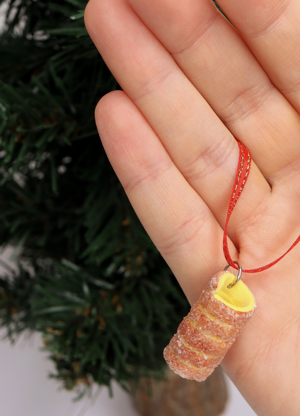 Ez a Kürtőskalács karácsonyfadísz tökéletes ajándék lehet valakinek, akinek ez a kedvenc desszertje, vagy szereti a különleges, mókás díszeket. Tedd még egyedibbé a karácsonyfádat és az ünnepeket ezzel a miniatűr étel karácsonyfa függővel!