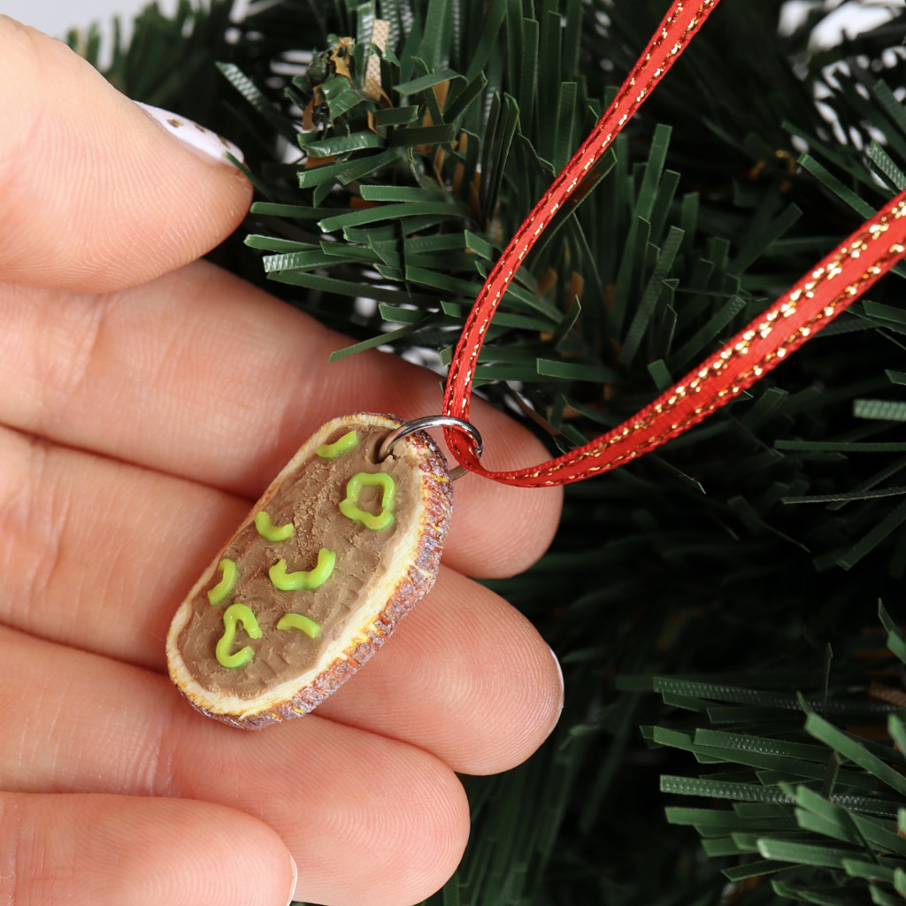 Ez a Májkrémes kenyér erős paprikával karácsonyfadísz tökéletes ajándék lehet valakinek, akinek ez a kedvenc étele, vagy szereti a különleges, mókás díszeket. Tedd még egyedibbé a karácsonyfádat és az ünnepeket ezzel a miniatűr étel karácsonyfa függővel!